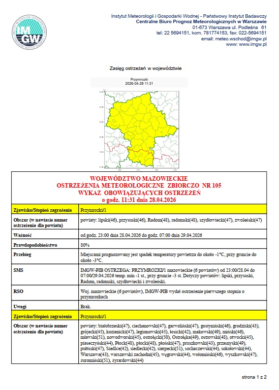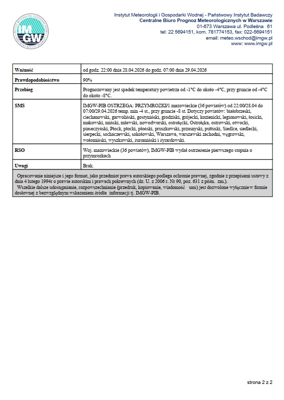 • Ostrzeżenie meteorologiczne