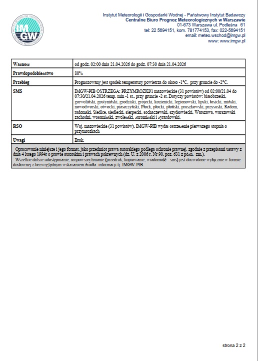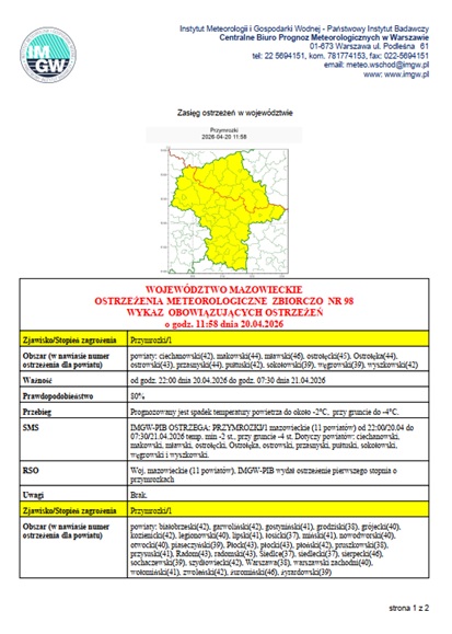 Ostrzeżenie meteorologiczne – PRZYMROZKI
