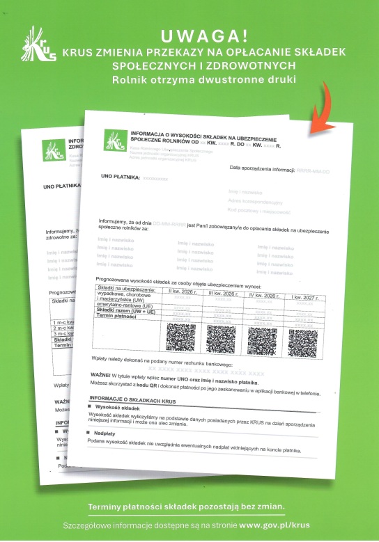 • Uwaga! KRUS zmienia przekazy na opłacanie składek społecznych i zdrowonych.