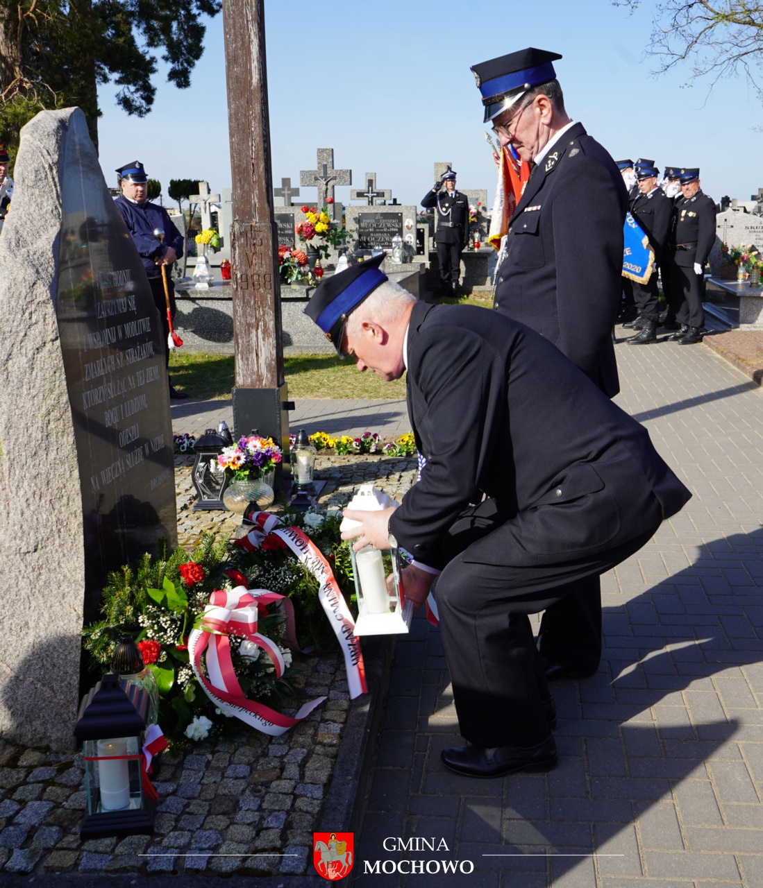 Następnie uczestnicy udali się na cmentarz parafialny, gdzie przy tablicy upamiętniającej zmarłych strażaków odczytano apel pamięci, przywołano nazwiska druhów, którzy odeszli na wieczną służbę, złożono kwiaty i zapalono znicze. Inskrypcja na tablicy przypomina o poświęceniu strażaków, którzy służąc Bogu i ludziom, oddali swoje życie w służbie innym.